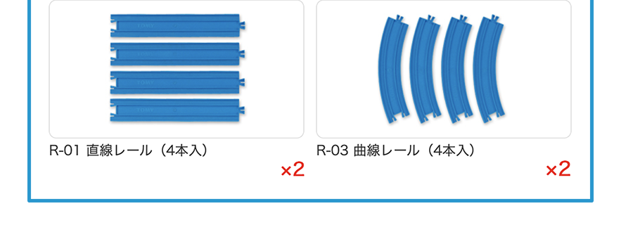 R-01 直線レール(4本入)×2、R-02 1/2直線レール(6本入)×1