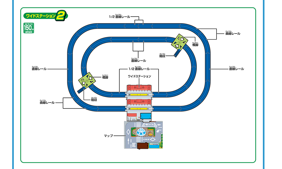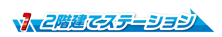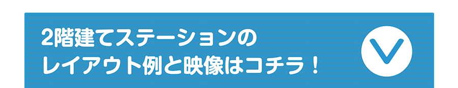 1階と2階で車両が交差する大迫力シーンが作れる駅だよ!