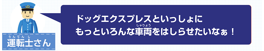 ドッグエクスプレスといっしょにもっといろんな車両を走らせたいなぁ!
