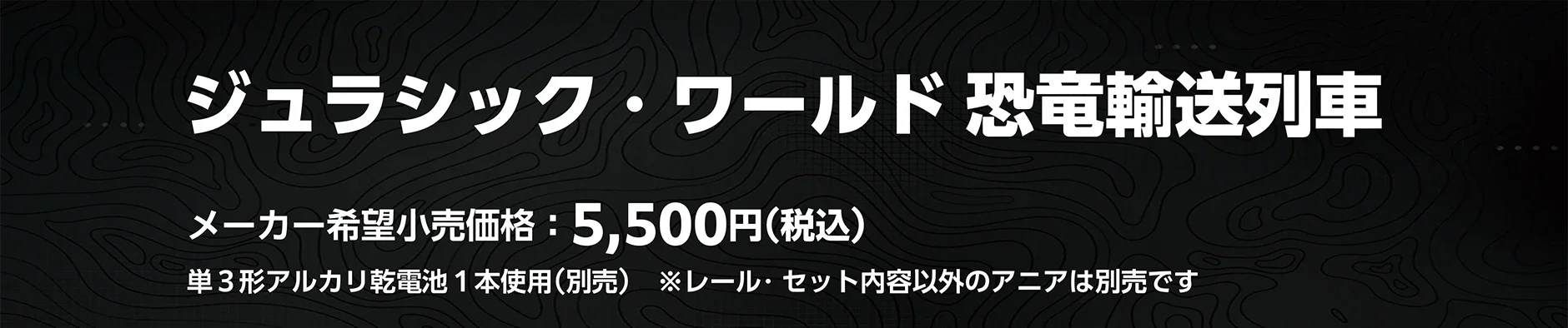 ジュラシック・ワールド 恐竜輸送列車 メーカー希望小売価格5,500円(税込)|単3形アルカリ乾電池1本使用(別売)|※レール・セット内容以外のアニアは別売です。