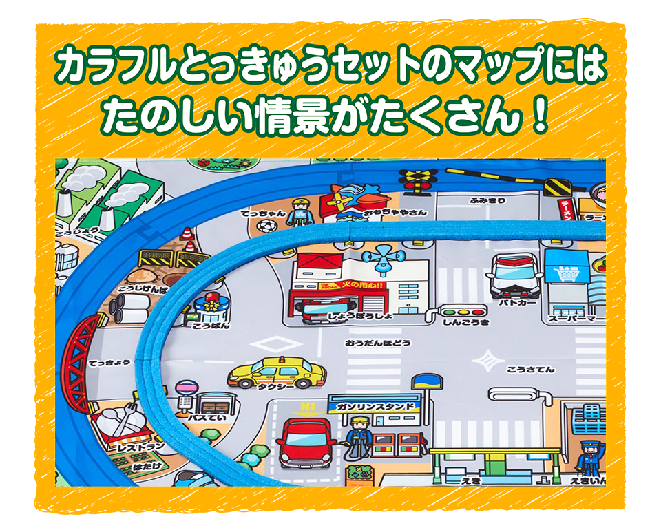 カラフルとっきゅうセットのマップにはたのしい状景がたくさん!