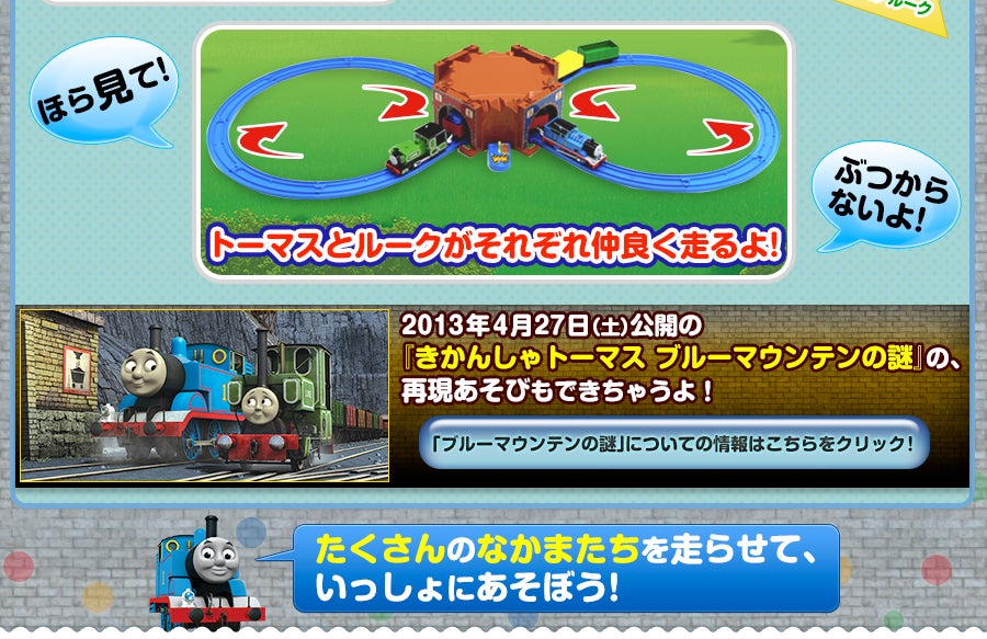 2013年4月、 きかんしゃトーマスの最新映画 「きかんしゃトーマス   ブルーマウンテンの謎」が 全国一斉公開されるよ!