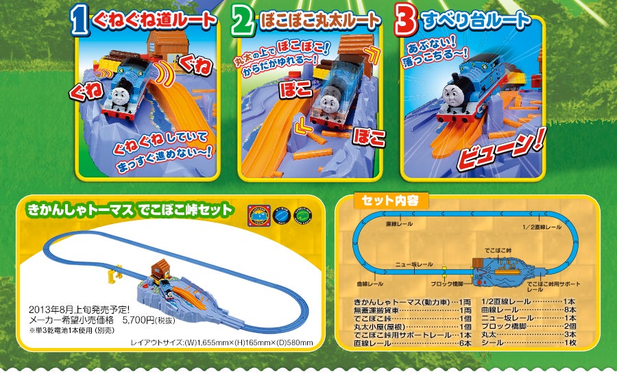 『ぐねぐね』『ぼこぼこ』『ビューン!』の3つのアクションが楽しいきかんしゃトーマス でこぼこ峠セットでいっぱい遊ぼう!