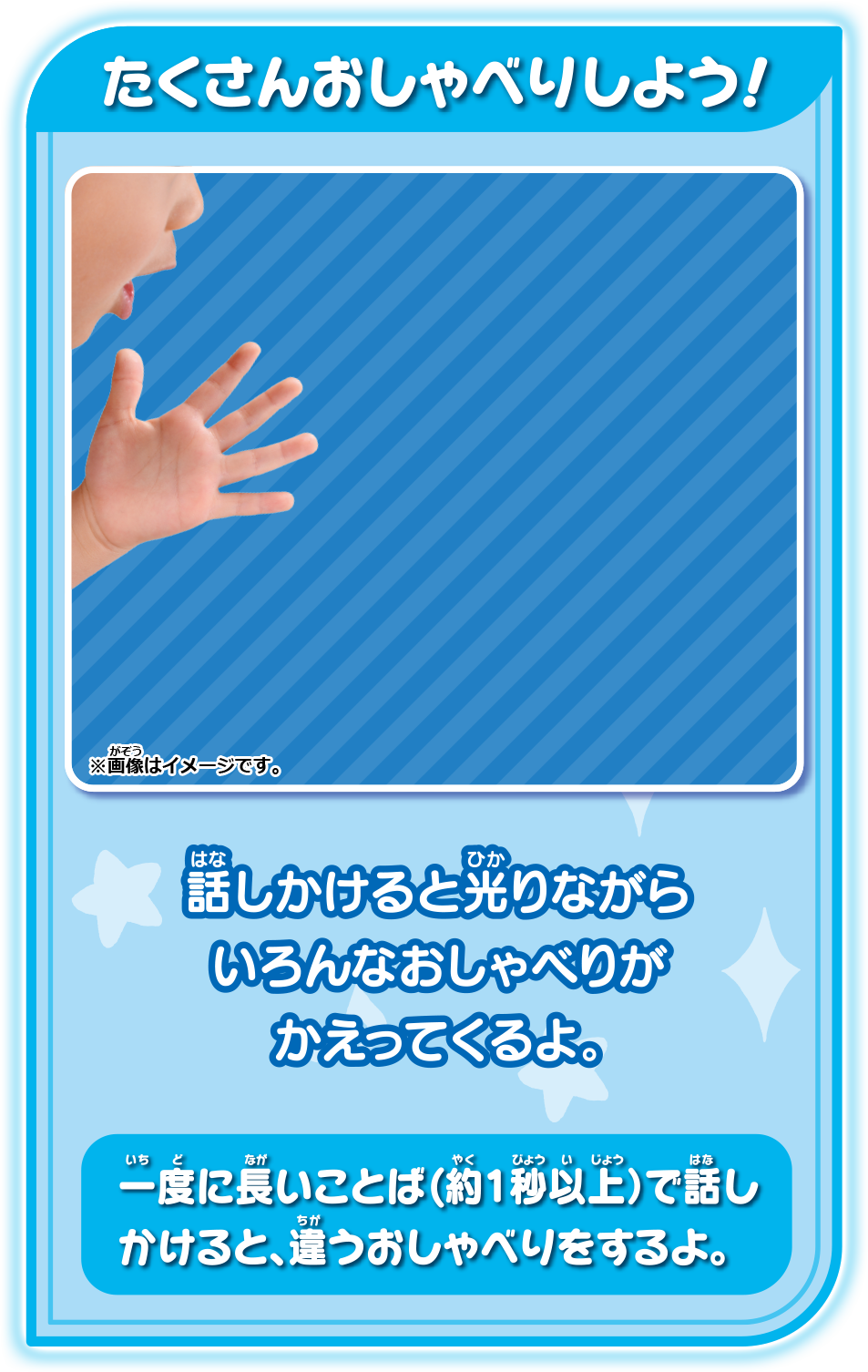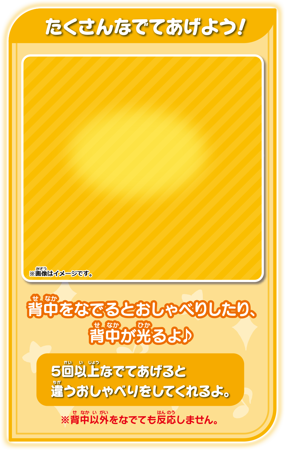 話しかけたり、背中をなでるとキラキラしておしゃべりするよ!
