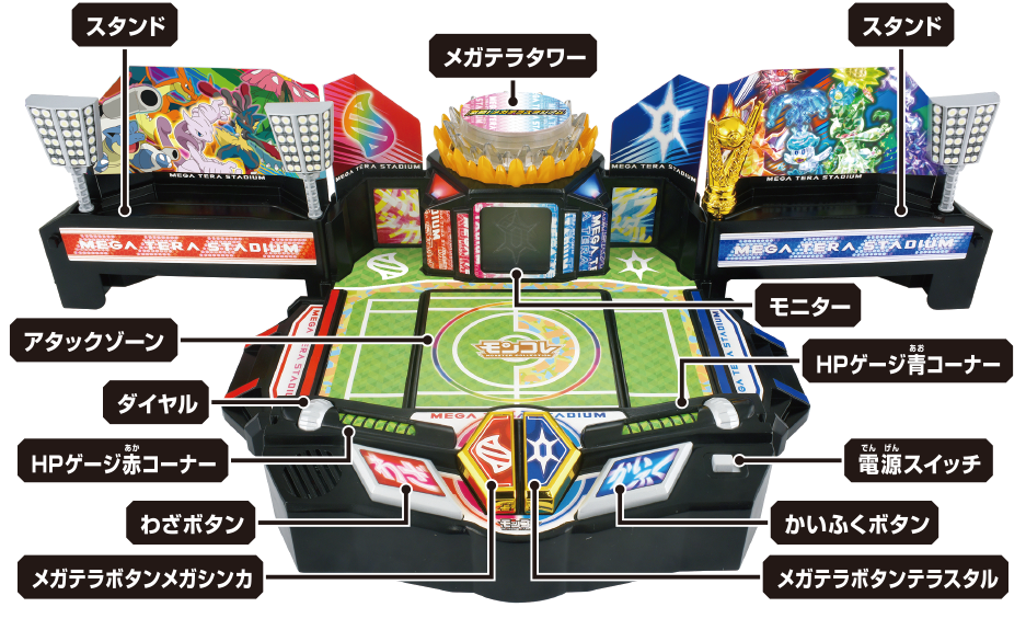 アタックゾーンに衝撃を与えるとメガテラタワーが光って攻撃サウンド&実況が鳴り響くぞ!