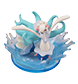 ~アシレーヌの説明~ アシレーヌはおどりながら水のバルーンをまわりにはなち、歌声のおんぱであやつる。そのすがたからアシレーヌは、うたひめとしょうされてるぞ。