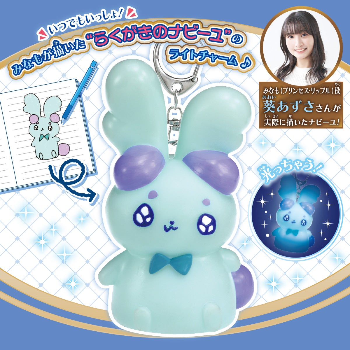 みなもがらくがきで描いたナビーユのイラストがライトチャームになりました。イベントやライブでキャラクターを応援する推しグッズです。キーホルダー付きで、いつでも一緒に持ち歩くことができる可愛いナビーユのマスコットです。