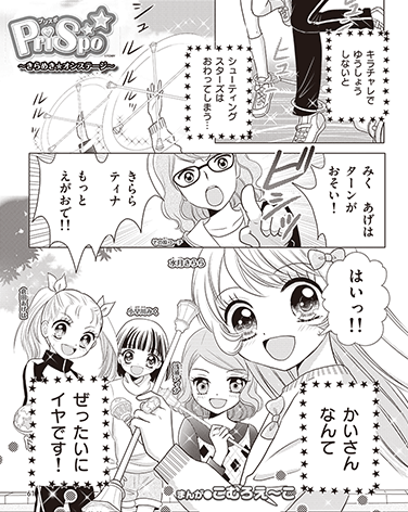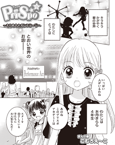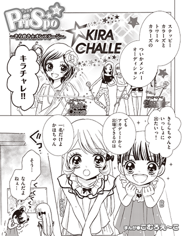このおはなしは、ステッピーを駆使してダンスする「ステッピーカラーズ」と、トワールリングバトンを使ってダンスする「トワールカラーズ」のパフォーマンスで、プリスポと出会い、胸にキラメキを感じた主人公「水月きららちゃん」が、いままで遠い世界と感じていたスターの世界を夢見る物語です。目指すはキラチャレのステージ!