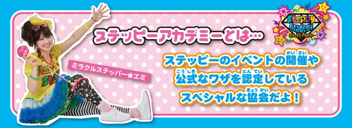 ステッピーアカデミーとは… ステッピーのイベントの開催や公式なワザを認定しているスペシャルな協会だよ!