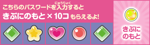 「ぷしぎなくも」でパスワードを入力するとアイテムなどがもらえるよ!