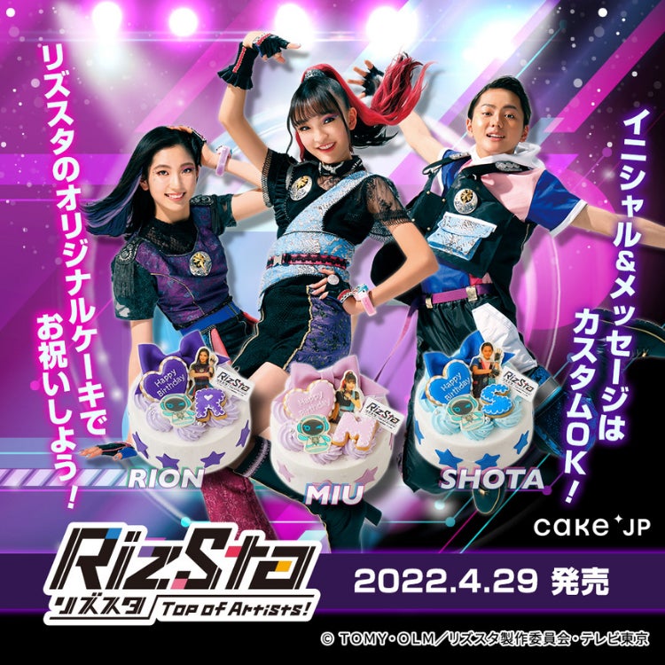 リズスタのホールケーキが登場!ケーキは「美羽」「凛音」「翔太」の全3種♪イニシャルとメッセージはカスタムOKだよ♪オリジナルケーキでお祝いしよう!