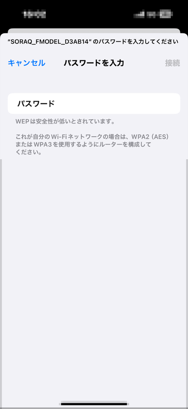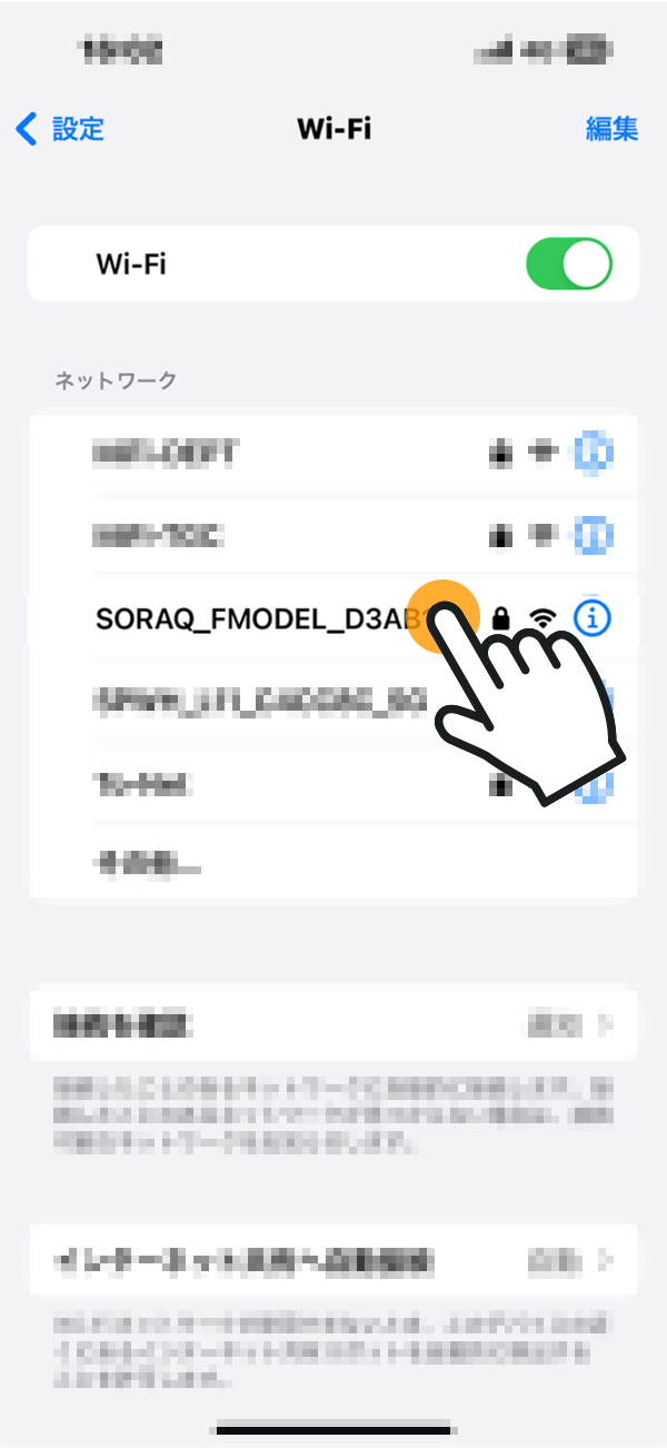 接続可能なネットワークの選択肢に戻ったSORA-QのWi-Fiをタップ