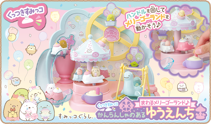 すみっコたちがゆらゆらぐるぐる♪|くっつきすみっコ まわるメリーゴーランド♪ かんらんしゃのあるゆうえんち