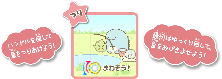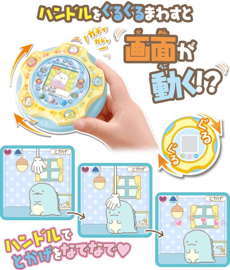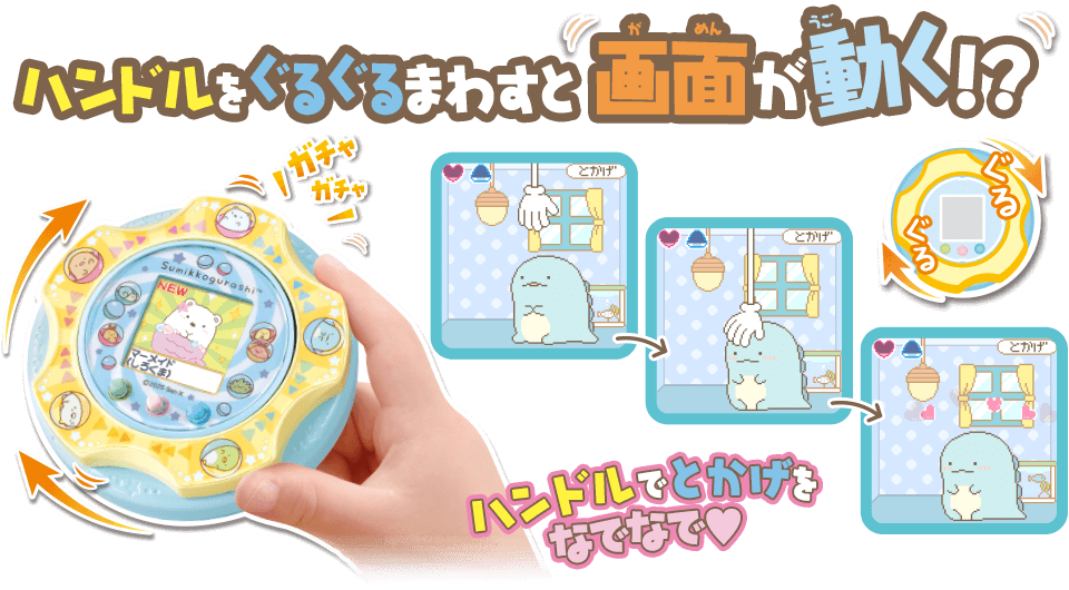 - ハンドルを回してすみっコのお世話!