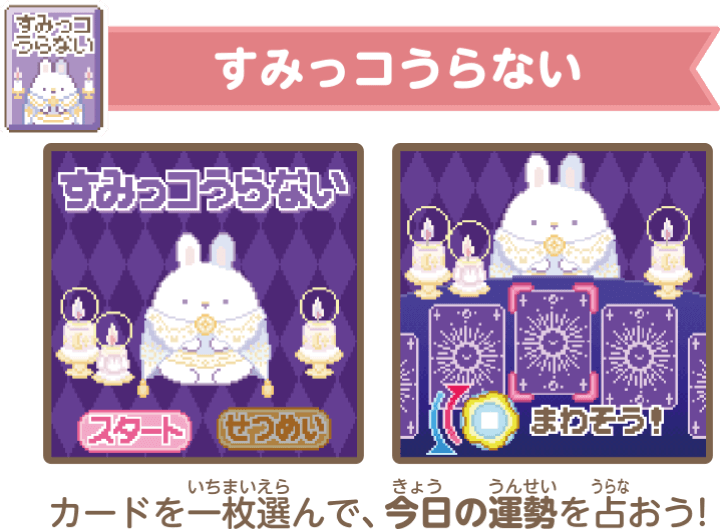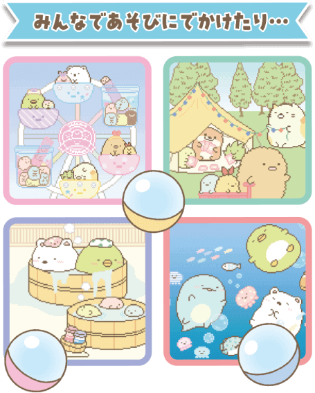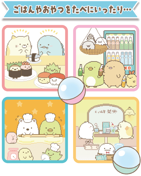 すみっコたちのかわいいミニゲーム5種類、占い1種類を収録! - 登場するすみっコは約150種類!