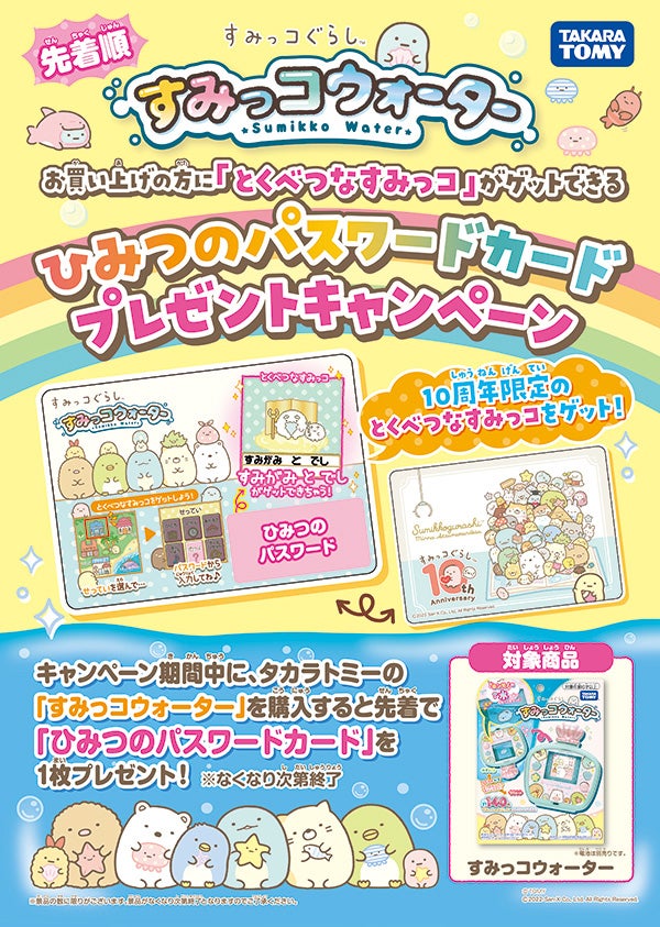 すみっコウォーターをお買い上げの方に“ひみつのパスワードカード”をプレゼント!