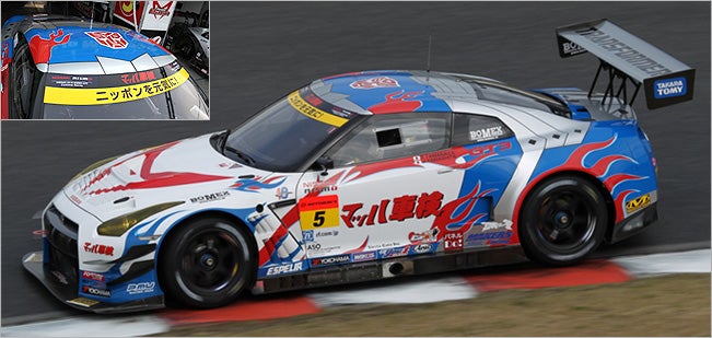 昨年、「トランスフォーマーGT」としてコラボレートしていたSUPER GT。 TF30周年の2014年は、なんとTFのマシンが参戦! チームは「マッハ車検 with トランスフォーマー30th」! 既に第一戦岡山から参戦している!次のレースは5/3.4の 富士スピードウエイだ!ゴールデンウィークにぜひ足を運んでみよう!