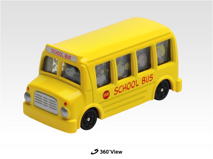 スヌーピーは、飼い主のチャーリー・ブラウンを、「自分のごはんを出してくれる丸頭の男の子」としか思っていない、こわいもの知らずのビーグル犬。そんなスヌーピーと仲間たちが乗っているおなじみの黄色いスクールバスがトミカに登場♪