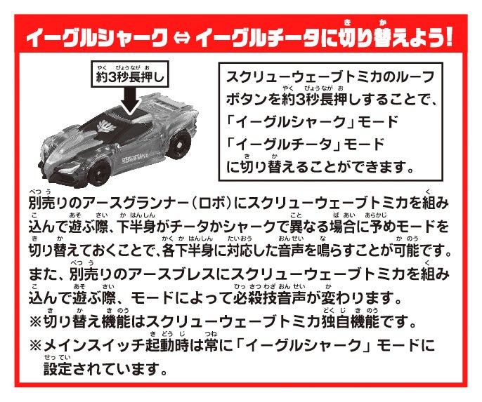【ご案内】スクリューウェーブトミカ 「イーグルチータ⇔イーグルシャーク」 モード切り替えについて
