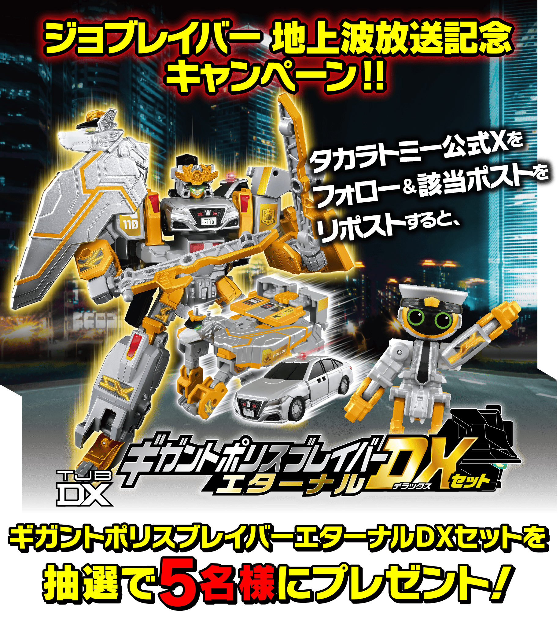 タカラトミー公式X(旧Twitter)のフォロー&対象投稿のリポストで、抽選で5名様に「ギガントポリスブレイバーエターナル DXセット」をプレゼント!