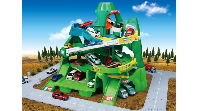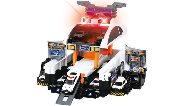 スクランブル発車モードに変形すると中央コアに格納したトミカが一斉出動します。