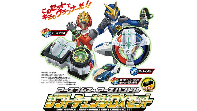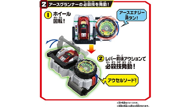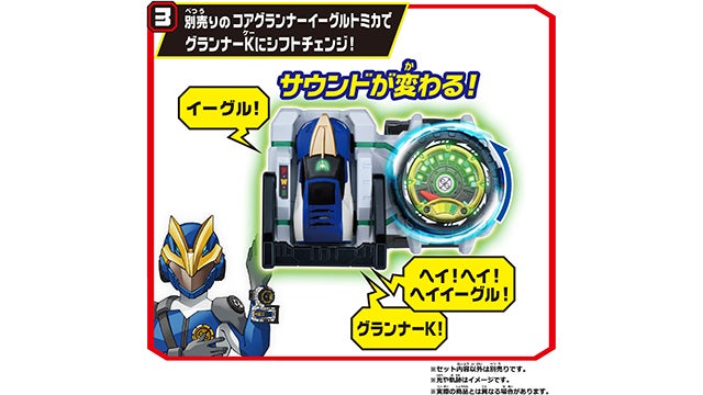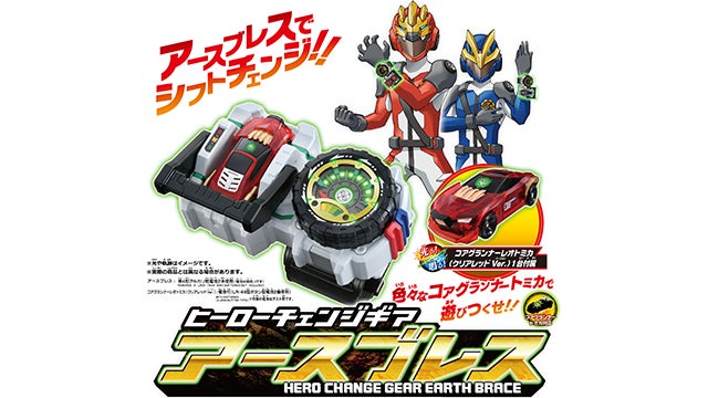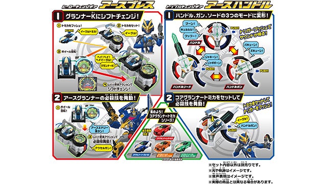 ・シフトチェンジ後、コアグランナートミカをセットした状態でホイール回転およびレバーの前後アクションすると光やサウンドとともにアースグランナーの必殺技サウンドが発動!