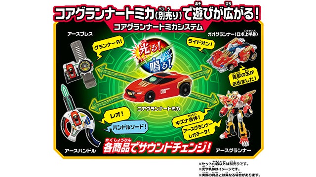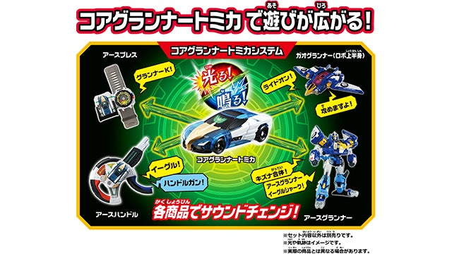 ・別売りのコアグランナートミカシリーズ対応!それぞれに対応したサウンドが楽しめるぞ!