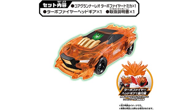 主人公ライガが、グランナーR(アール)ターボファイヤー(炎のエナジーを纏ったヒーロー)にタイプチェンジするために使用するコアグランナートミカ!