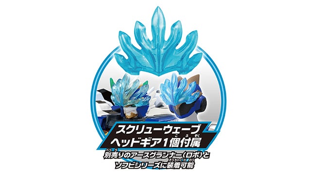 ・スクリューウェーブヘッドギア付属。別売りのアースグランナー(ロボ)とソフビシリーズに装着可能!