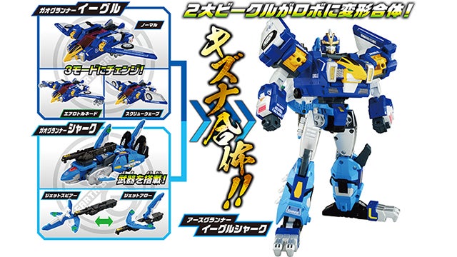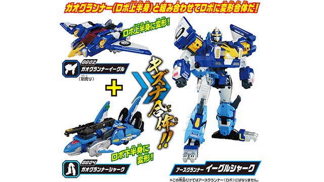 ・ガオグランナーイーグル(別売り)と組み合わせてアースグランナーイーグルシャーク(ロボ)へ変形合体可能!