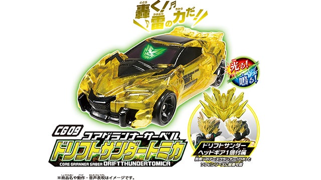 カケルが、グランナーX(エックス)ドリフトサンダー(雷のエナジーを纏ったヒーロー)にタイプチェンジするために使用するコアグランナートミカ!