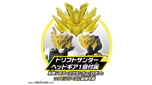 ・ドリフトサンダーヘッドギア付属。別売りのアースグランナー(ロボ)とソフビシリーズに装着可能!