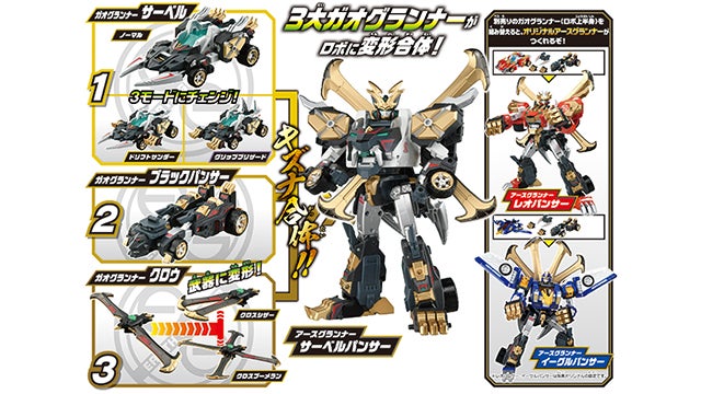 ・ガオグランナーサーベルとガオグランナーブラックパンサー、ガオグランナークロウの3大ビークルを組み合わせることでアースグランナーサーベルパンサー(ロボ)に変形合体可能!