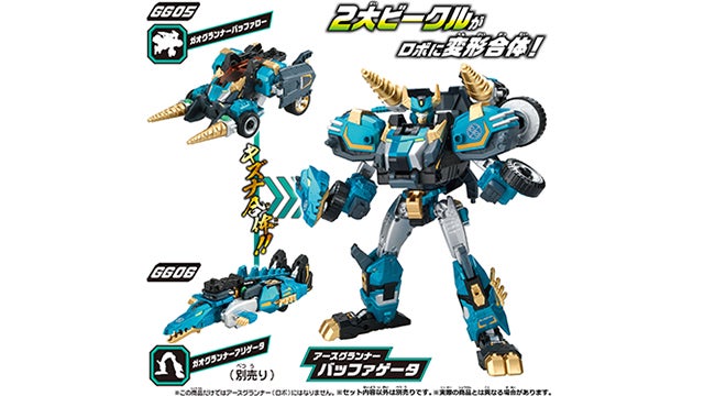 ・ガオグランナーアリゲータ(別売り)と組み合わせてアースグランナーバッファゲータ(ロボ)へ変形合体可能!