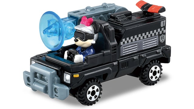 チームをサポートするポリスビークル。透明なレーダーパーツを搭載したミニーマウスのトミカです。
