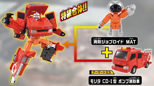 アーマートミカ「モリタ CD-Ⅰ型 ポンプ消防車」が消防ジョブロイドと合体し、消防隊のロボット「ファイヤブレイバー モリタ CD-Ⅰ型 ポンプ消防車」になるぞ!