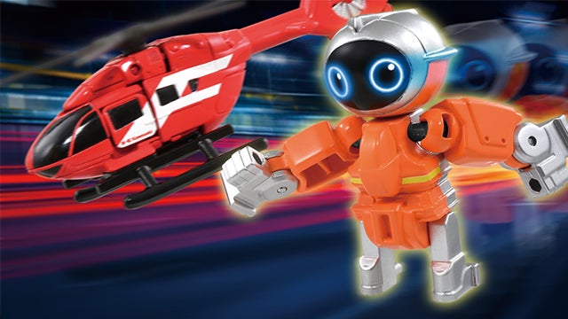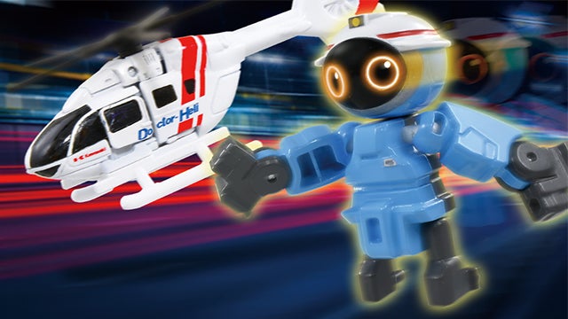 アーマートミカ「川崎重工 BK117 D-3 ドクターヘリ」が救急ジョブロイドと合体し、救急隊のロボット「メディブレイバー 川崎重工 BK117 D-3 ドクターヘリ」になるぞ!