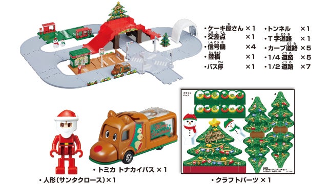どうろや情景を組み合わせて色々なレイアウトを組むことが出来ます。サンタクロース(人形)、トミカトナカイバスが付属、トミカタウンの入門にもおすすめです。