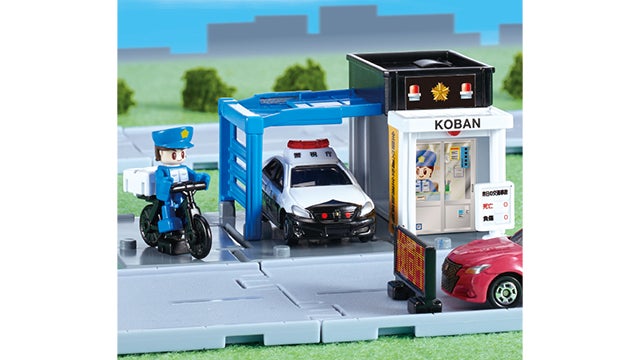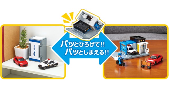 パッと開いてすぐ遊べるトミカタウンに交番が登場!