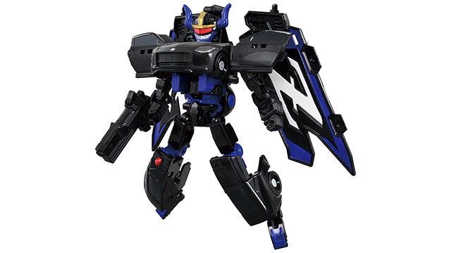 黒色のアーマートミカ「日産 フェアレディZ 覆面パトロールカー」が機捜ジョブロイドと合体し、悪魔の仮面を被ったポリスブレイバー「ポリスブレイバーNULL 日産 フェアレディZ 覆面パトロールカー」になるぞ!
