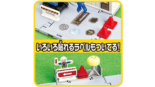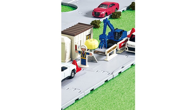 様々な小物パーツで道路工事のシーンを再現して楽しむことができます。