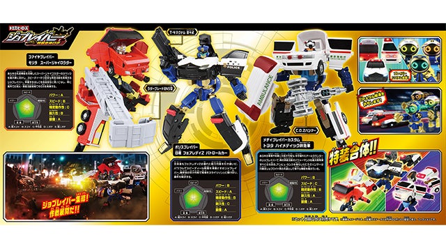 トミカから生まれた新たなヒーロー「トミカヒーローズ ジョブレイバー 特装合体ロボ」から『ポリスブレイバー 日産 フェアレディZ パトロールカー』、『ファイヤブレイバー モリタ スーパージャイロラダー』、『メディブレイバーカスタム トヨタ ハイメディック救急車』がセットで登場!