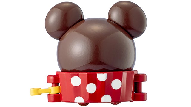 ミニーはチョコレートカラーにラズベリー色のリボンがポイントです。カップはスカートの水玉模様をデザイン。