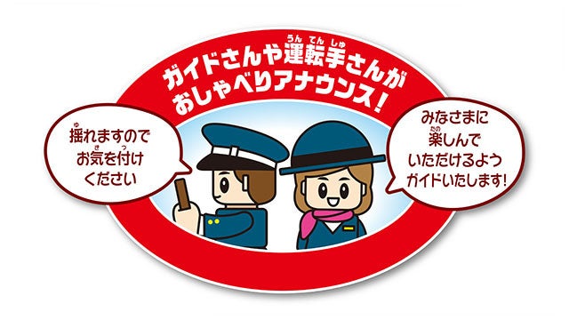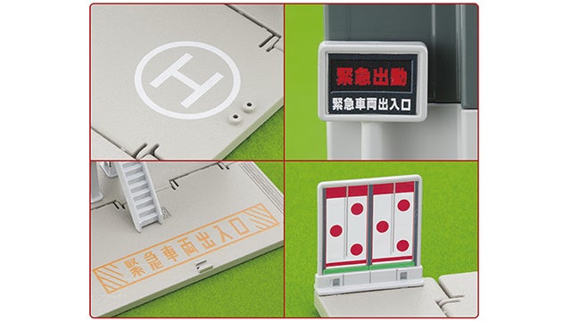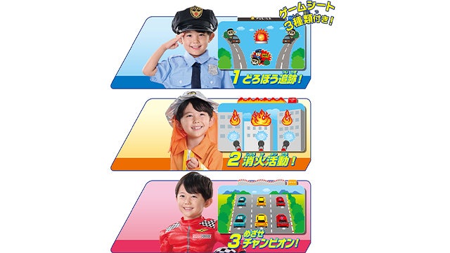 ①マップ内の建物のガイドを沢山してくれる音声や、整備士の声、パトカーや救急車のサイレンなどの音声が、マップに合わせて遊びを盛り上げてくれます。