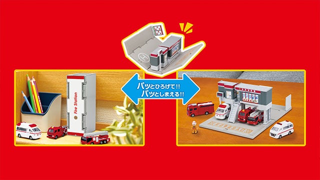 パッと開いてすぐ遊べるトミカタウンに消防署が初登場!消防士人形付き!