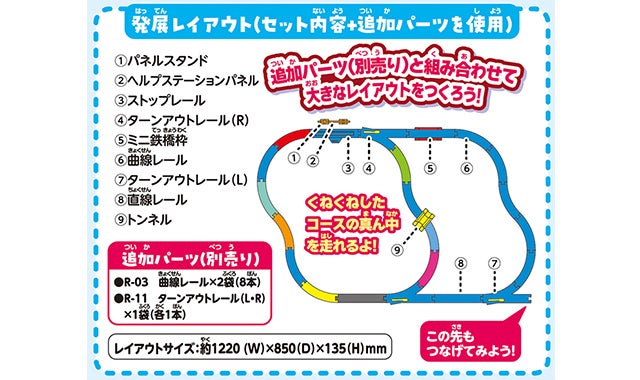 別売りの「2WAYにぎやか高速どうろ(2024年10月発売予定)」とつなげれば大きなドライブコースが完成します!