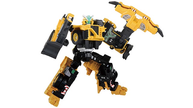 ブルドーザーが腕のパーツになる、「ブルアームモード」そして、ダンプトラックが腕のパーツになる「ダンプアームモード」2つのモードで迫りくる脅威を打ち払え!