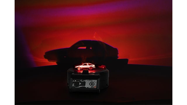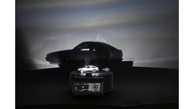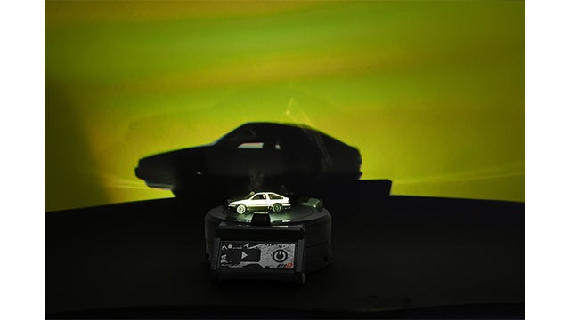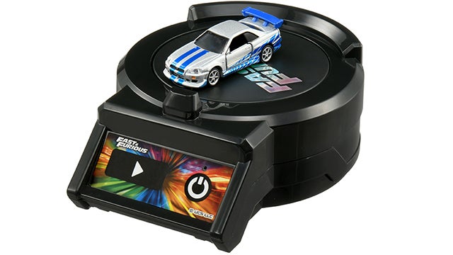 白煙を上げながらトミカがドリフト走行するオリジナリティ際立つターンステージ。