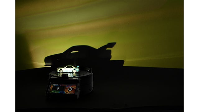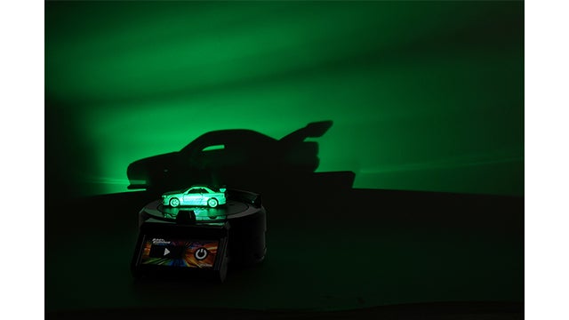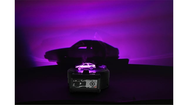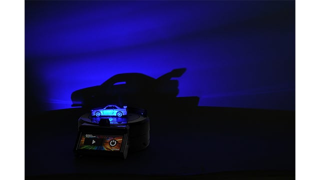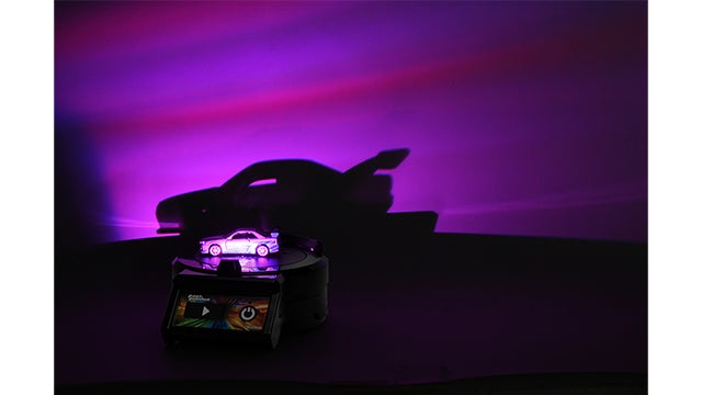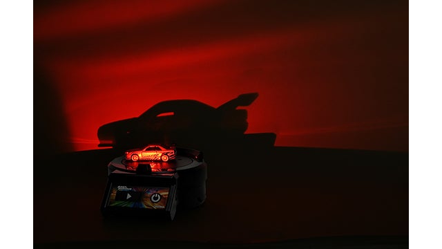 スキール音やBGMの打ち込みサウンド、7色のLEDで臨場感を演出します。