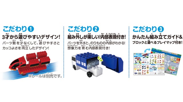初めてでも簡単で、トミカやプラレールといっしょに遊べる楽しいブロックが登場!